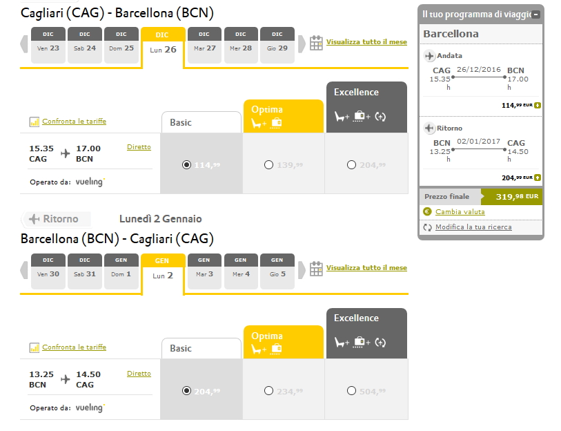 Vediamo l’operativo voli da Cagliari,Roma e Milano