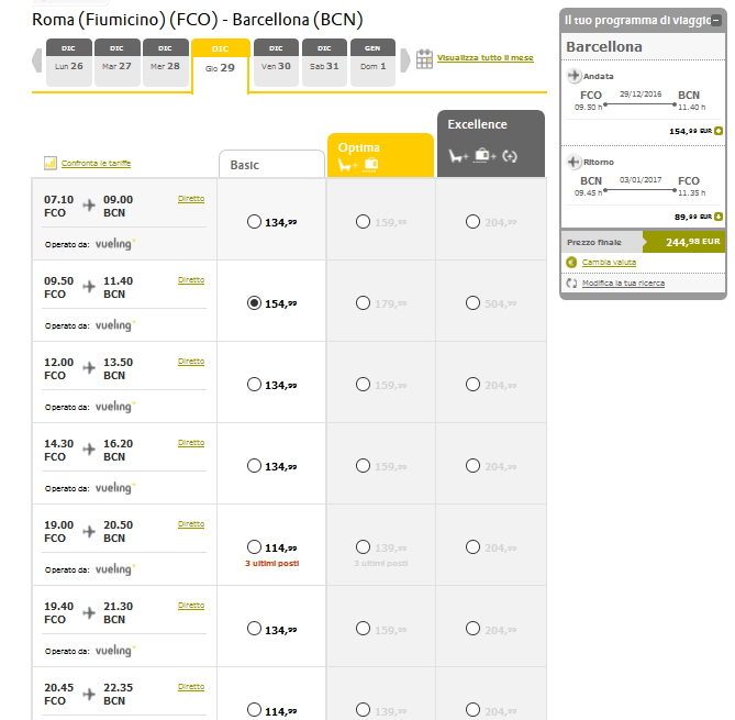 La compagnia più conveniente è sicuramente la low cost Vueling: in realtà anche Ryanair vola da Roma Ciampino e Bergamo ma con tariffe direi decisamente poco convenienti.