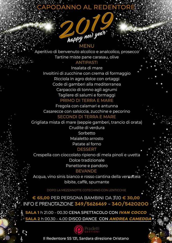 MENU DI CAPODANNO 2019 AL REDENTORE – SARDARA- LUNEDI 31 DICEMBRE 2018