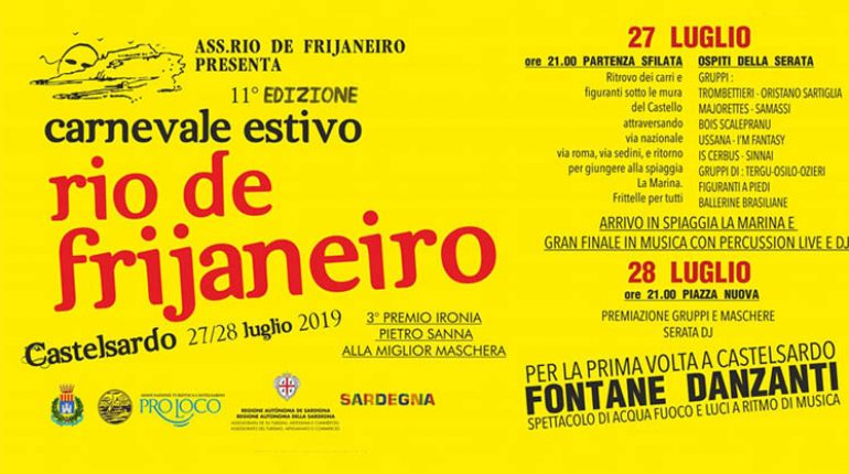Il 27 e 28 luglio 2019 infatti, torna il carnevale estivo di Castelsardo, che con uno splendido gioco di parole diventa “Rio de Frjianeiro” (Rio de Janaiero la conosciamo tutti ed è la patria del carnevale brasiliano per eccellenza, mentre la Frijiola è la frittella tipica del carnevale del nord Sardegna). Le iscrizioni scadono giovedì 25 luglio 2019.