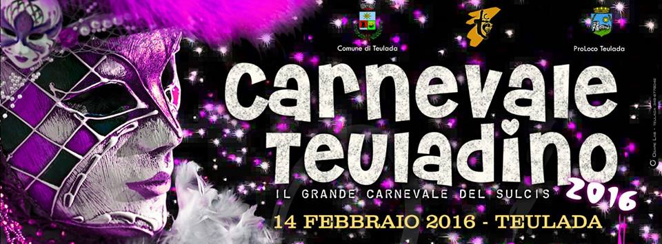 Lo Staff del Carnevale Teuladino 2016 comunica che sono aperte le iscrizioni al grande Carnevale del Sulcis che si terrà in data 14 Febbraio 2016.Siete tutti invitati a partecipare con carri allegorici e gruppi a piedi! Per le iscrizioni e informazioni,contattare lo Staff al seguente numero (3899318588).