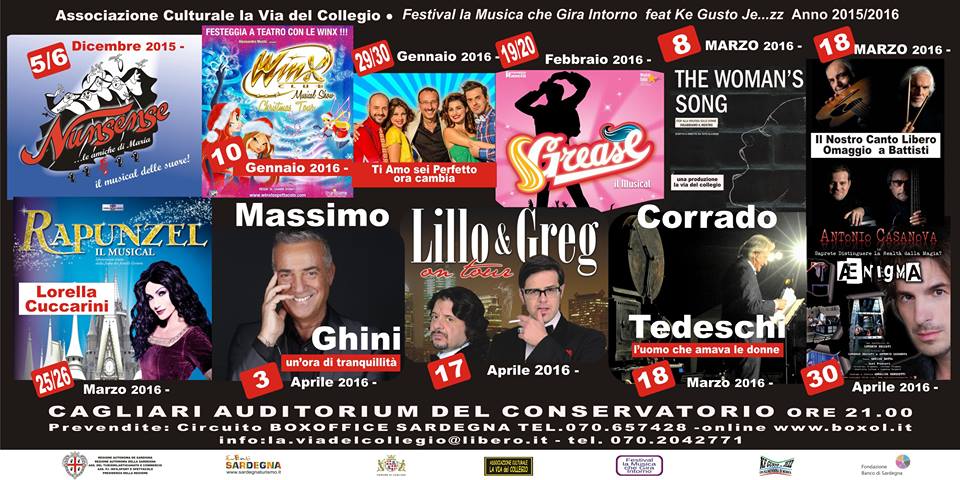 CARTELLONE SPETTACOLI 2015/2016 ASSOCIAZIONE CULTURALE LA VIA DEL COLLEGIO – CAGLIARI- NUORO-SASSARI