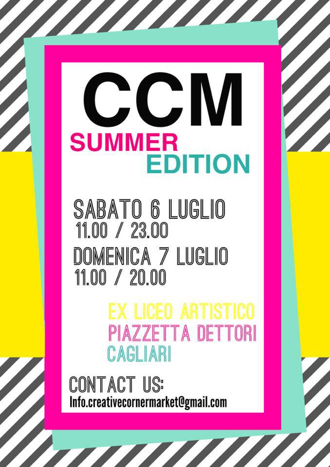 CCM – CREATIVE CORNER MARKET – EX LICEO ARTISTICO – CAGLIARI – 6-7 LUGLIO 2013CCM – CREATIVE CORNER MARKET – EX HIGH ART SCHOOL – CAGLIARI – JULY 6th to 7th Reviewed by admin on . Torna il CCM e torna il primo week end dei saldi___non potevamo non pensare all' Ex-Liceo Artistico nel week end che chiama in via manno e via garibaldi il popo Torna il CCM e torna il primo week end dei saldi___non potevamo non pensare all' Ex-Liceo Artistico nel week end che chiama in via manno e via garibaldi il popo Rating: