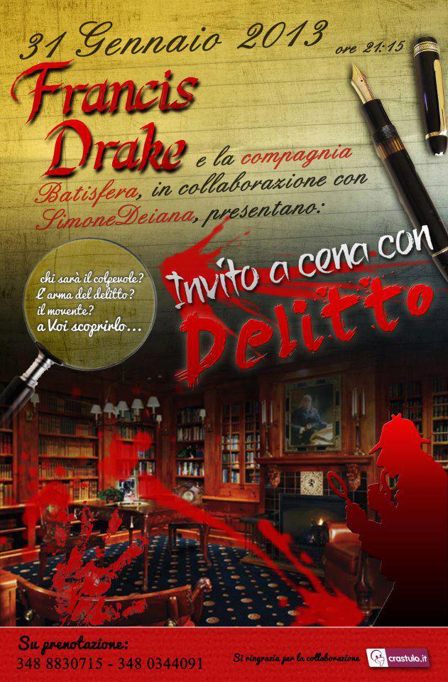 CENA CON DELITTO – FRANCIS DRAKE – CAGLIARI – GIOVEDI 31 GENNAIO ORE 21,15DINNER WITH DEATH – FRANCIS DRAKE – CAGLIARI – THURSDAY JANUARY 31 AT 9:15 PM