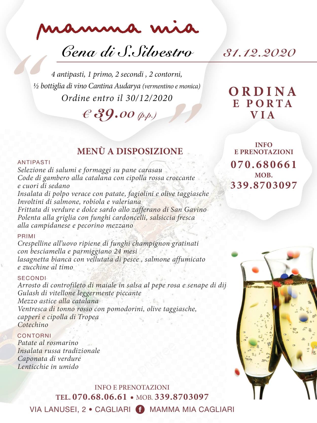 CENA DI SAN SILVESTRO – MENU D’ASPORTO ANTICO CAFFE’ & MAMMA MIA – CAGLIARI – GIOVEDI 31 DICEMBRE 2020