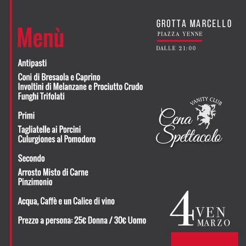 CENA SPETTACOLO & PARTY – GROTTA MARCELLO – CAGLIARI – VENERDI 4 MARZO 2016