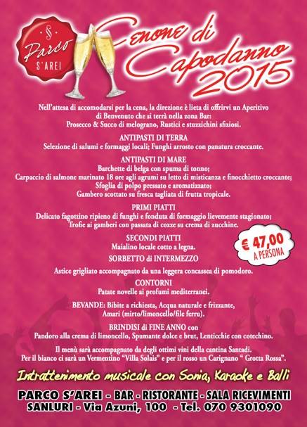 Cenone di Capodanno 2015 al Parco S'Arei - Sanluri - mercoledi 31 dicembre 2014Cenone di Capodanno 2015 al Parco S'Arei - Sanluri - mercoledi 31 dicembre 2014