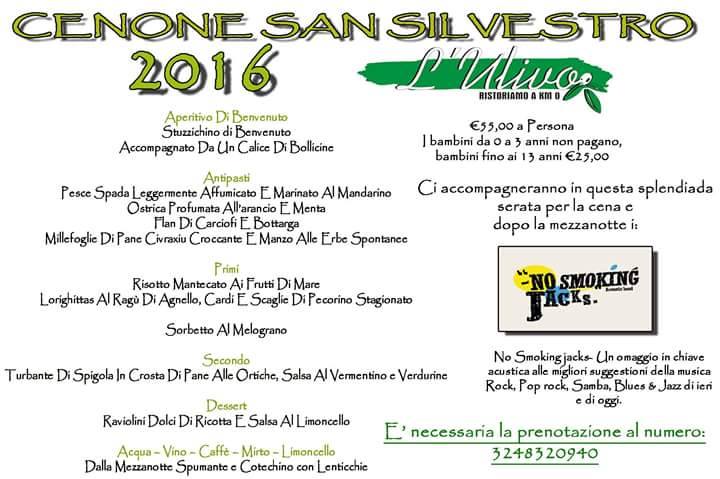CENONE DI CAPODANNO 2016 AL RISTORANTE L’ULIVO – GONNOSFANADIGA – GIOVEDI 31 DICEMBRE 2015