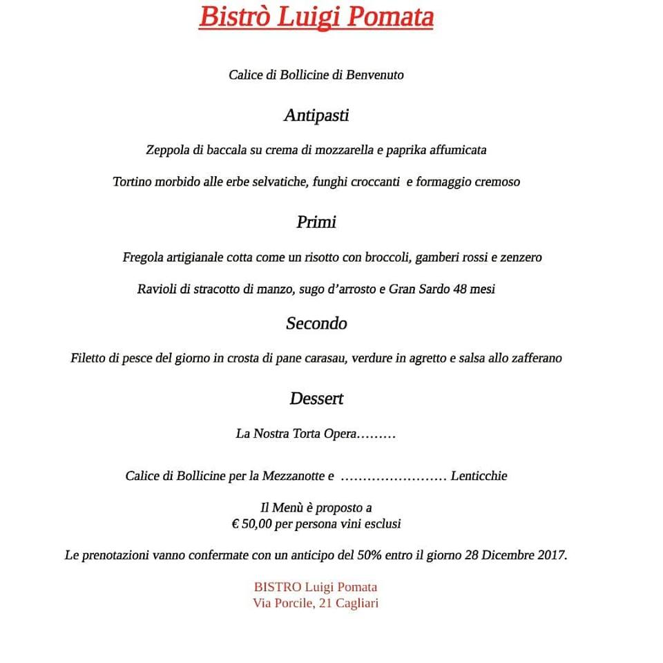 LUIGIPOMMENU DEL CENONE DI CAPODANNO 2018 AL BISTROT E AL NEXT FOOD DI LUIGI POMATA- DOMENICA 31 DICEMBRE 2017