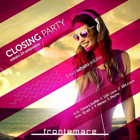 CLOSING PARTY – IL TUO SABATO ADULTO – FRONTEMARE – QUARTU SANT’ELENA – SABATO 24 SETTEMBRE 2016