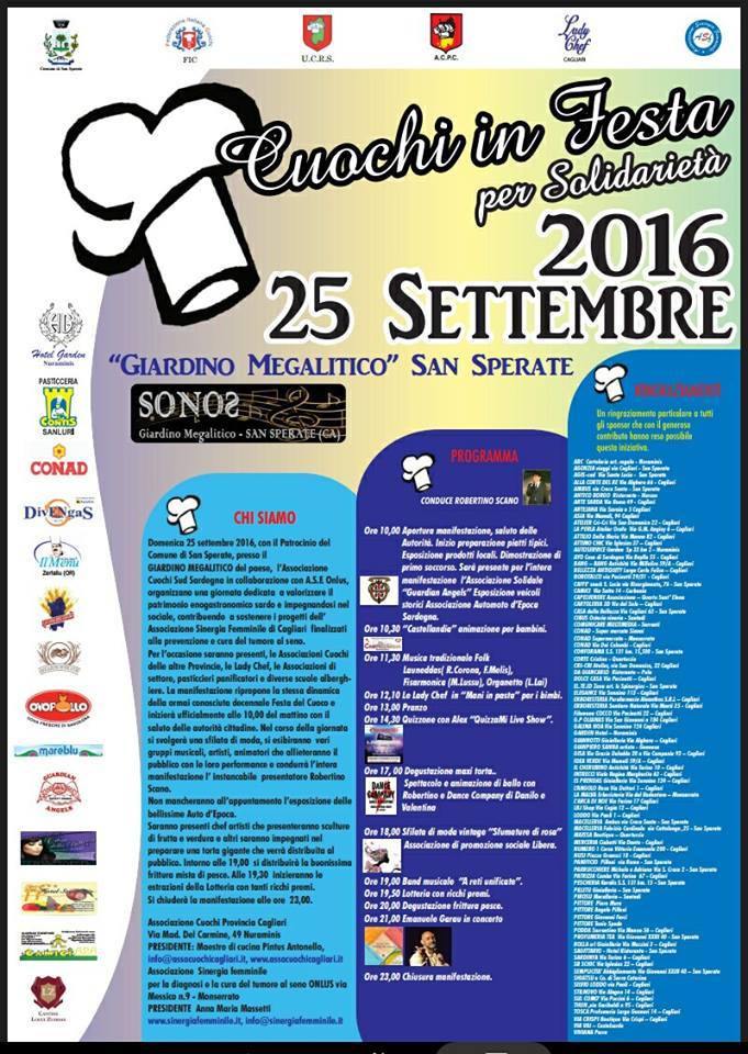 CUOCHI IN FESTA PER SOLIDARIETA’ – SAN SPERATE – DOMENICA 25 SETTEMBRE 2016