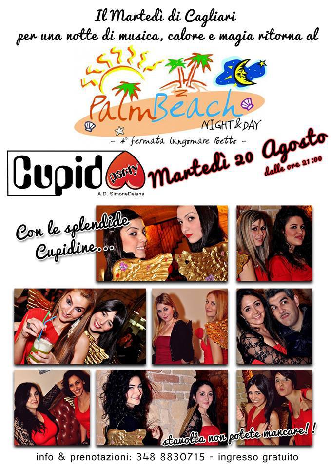 CUPIDO PARTY – PALM BEACH – CAGLIARI – MARTEDI 20 AGOSTO 2013CUPIDO PARTY – PALM BEACH – CAGLIARI – TUESDAY AUGUST 20 Reviewed by admin on . Serata unica per il Cupido Party martedi 20 agosto 2013: si ritorna in una location estiva "storica", il Palm Beach....sempre in compagnia delle attraenti cupid Serata unica per il Cupido Party martedi 20 agosto 2013: si ritorna in una location estiva "storica", il Palm Beach....sempre in compagnia delle attraenti cupid Rating: