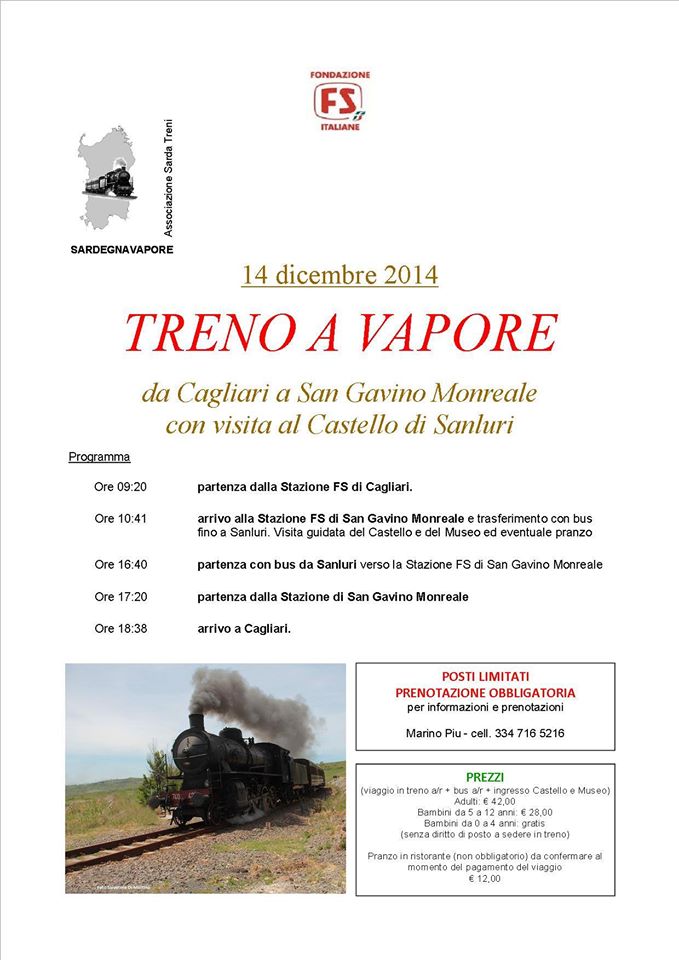 DA CAGLIARI A SAN GAVINO MONREALE IN TRENO A VAPORE CON VISITA AL CASTELLO DI SANLURI – DOMENICA 14 DICEMBRE 2014