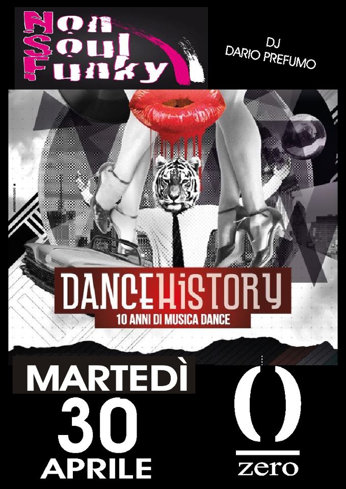 TUESDAY, April 30 ZERO the last 10 years of dance music with the party DanceHistory ….. the dance hit more ballads the last 10 years playing live not by Funky Soul and mixed by Dario Prefumo