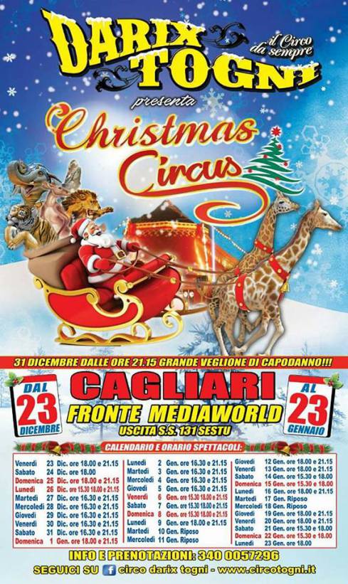 Per le festività Natalizie 2016/2017 il Circo Darix Togni, delle famiglie Togni e Martino, presenterà i propri spettacoli nella città di Cagliari, dal 23 dicembre 2016 al 23 gennaio 2017.