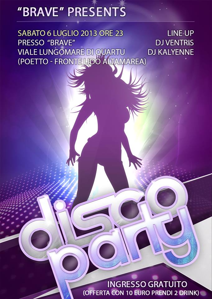 DISCO PARTY – BRAVE – QUARTU S.ELENA – SABATO 6 LUGLIO 2013DISCO PARTY – BRAVE – QUARTU S.ELENA – SATURDAY JULY 6th