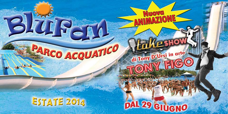 DOMENICA 29 GIUGNO 2014 RIAPRE IL BLUFANSUNDAY JUNE 29,2014 OPEN BLUFAN WATERPARK Reviewed by admin on . Domenica 29 giugno 2014 riapre i battenti il parco acquatico BluFan che si trova tra Villa S.Pietro e Sarroch. Quest'estate TAKESHOW, nuova animazione di Tony D Domenica 29 giugno 2014 riapre i battenti il parco acquatico BluFan che si trova tra Villa S.Pietro e Sarroch. Quest'estate TAKESHOW, nuova animazione di Tony D Rating: 0