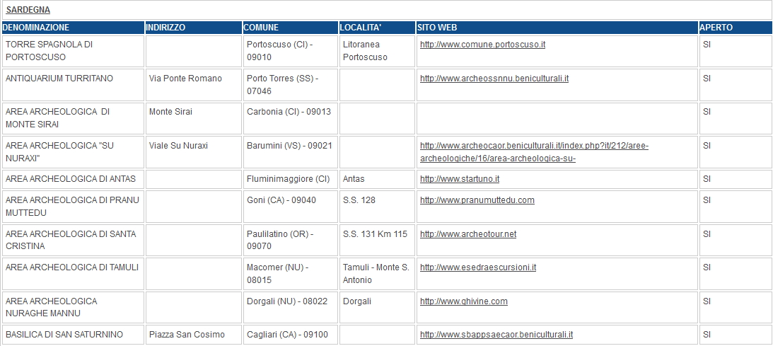 ecco i musei e i luoghi di interesse aperti in Sardegna