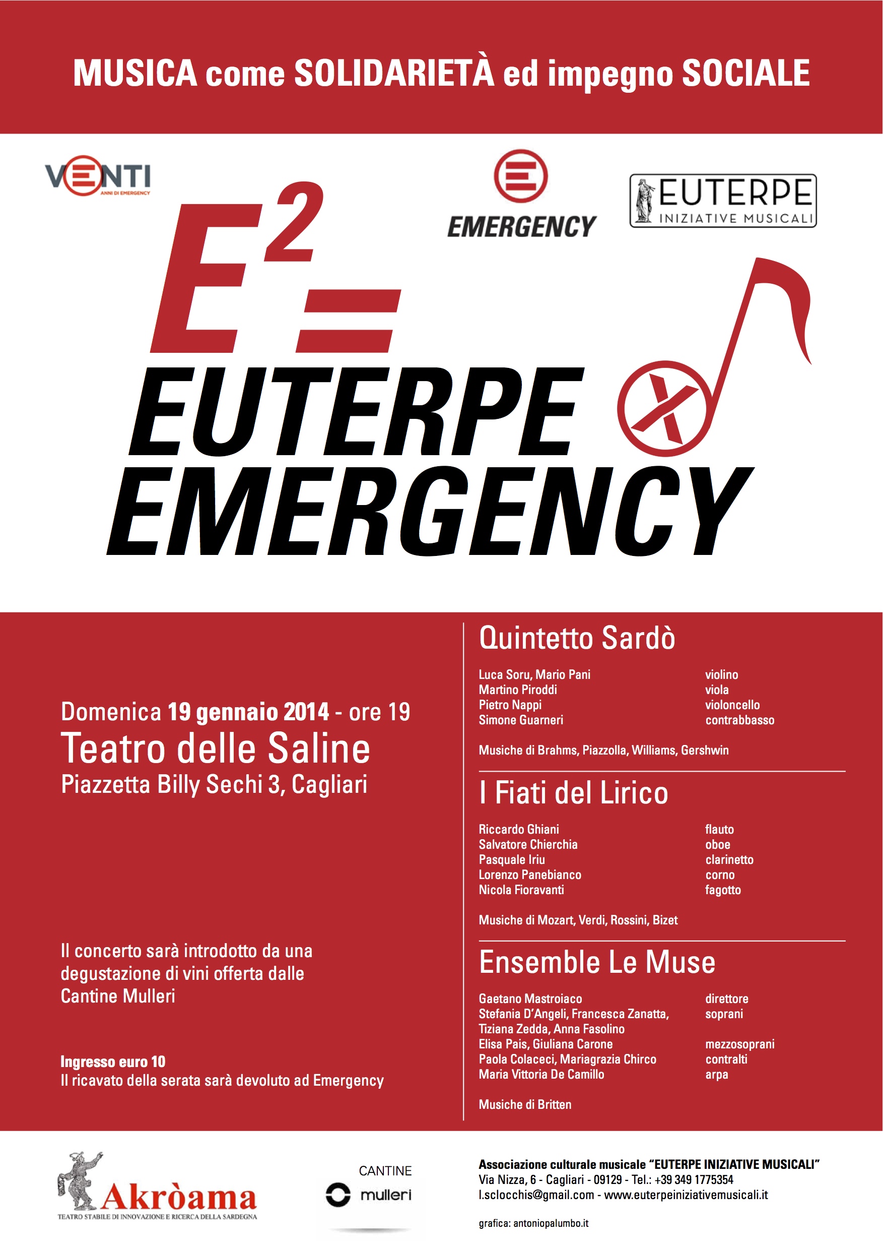 E2= EUTERPE X EMERGENCY – TEATRO DELLE SALINE – CAGLIARI – DOMENICA 19 GENNAIO 2014E2= EUTERPE X EMERGENCY – SALINE THEATRE – CAGLIARI – SUNDAY JANUARY 19,2014