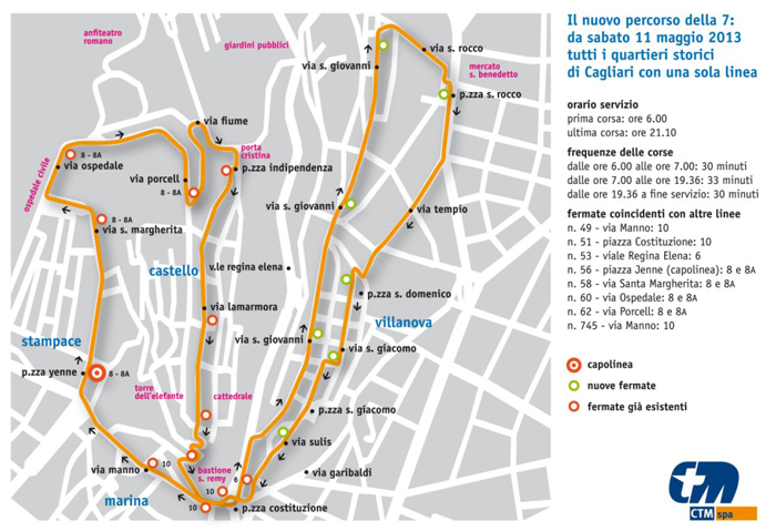 ECCO IL PERCORSO DELLA NUOVA LINEA 7 DEL CTM DI CAGLIARITHE NEW PATH LINE 7 CTM CAGLIARI