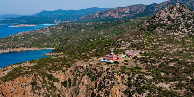 The view extends as far as the tower of Cape Malfatana . and Capo Teulada.