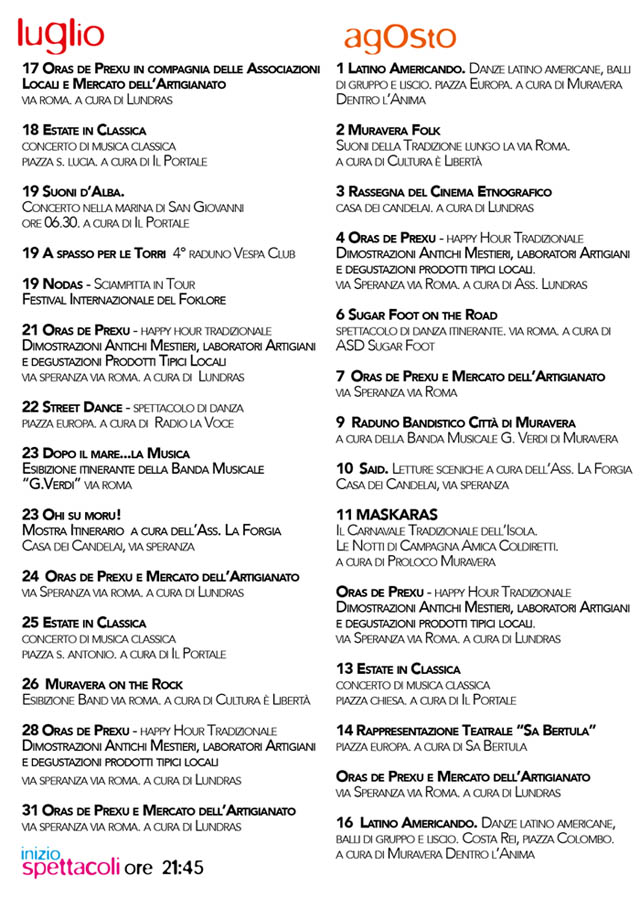 Tutti gli eventi dell'estate di Muravera - luglio-agosto-settembre 2015Tutti gli eventi dell'estate di Muravera - luglio-agosto-settembre 2015