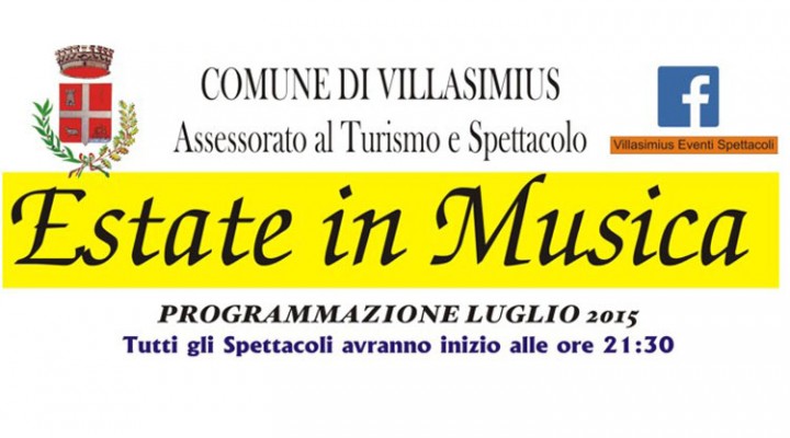 ESTATE IN MUSICA 2015 – PROGRAMMAZIONE DI LUGLIO A VILLASIMIUS Reviewed by admin on .   ECCO TUTTI GLI EVENTI DI LUGLIO 2015 A VILLASIMIUS   ECCO TUTTI GLI EVENTI DI LUGLIO 2015 A VILLASIMIUS Rating: 0