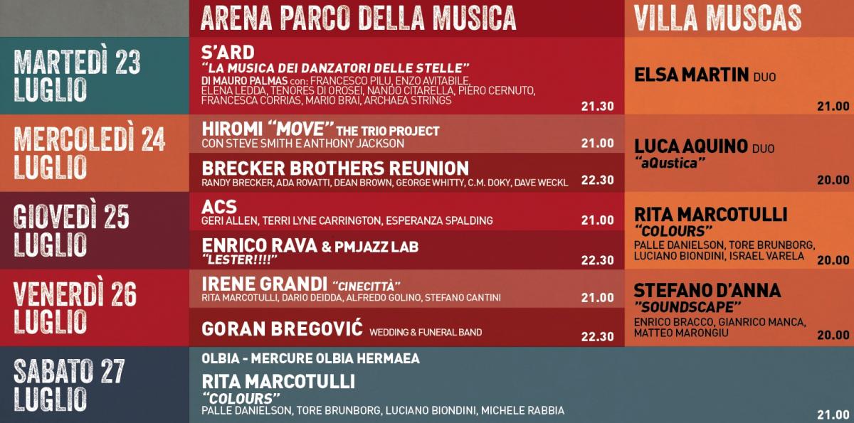 A luglio il Jazz a Cagliari si fa nei parchi con la presenza di grandi artisti internazionali come Randy Brecker, Esperanza Spalding, Hiromi, Goran Bregovic, Enrico Rava, Irene Grandi.