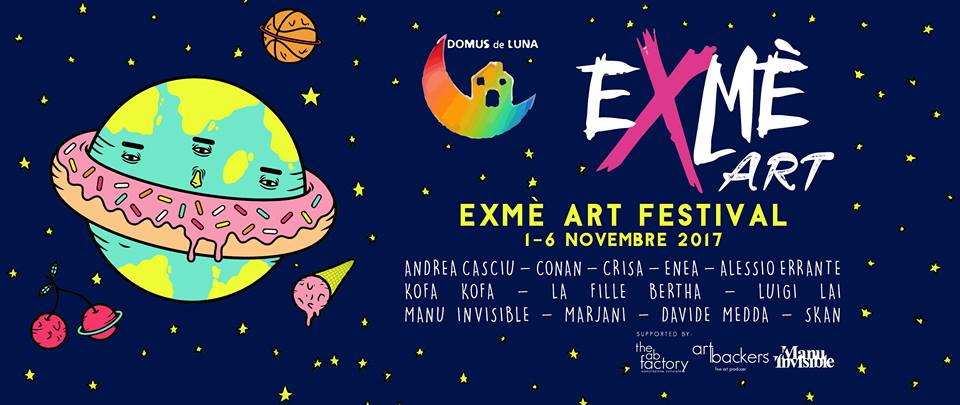 Per celebrare il nuovo percorso artistico del centro giovanile Exmè, dal 1 al 6 novembre 2017, si svolgerà Exmè ART Festival durante il quale dodici artisti di fama internazionale in dialogo con i bambini e i ragazzi del rione, creeranno delle opere lungo i muri perimetrali dell’edificio, seguendo il tema scelto per il 2018 dai bambini dell’Exmè: LO SPAZIO LE STELLE E I PIANETI.