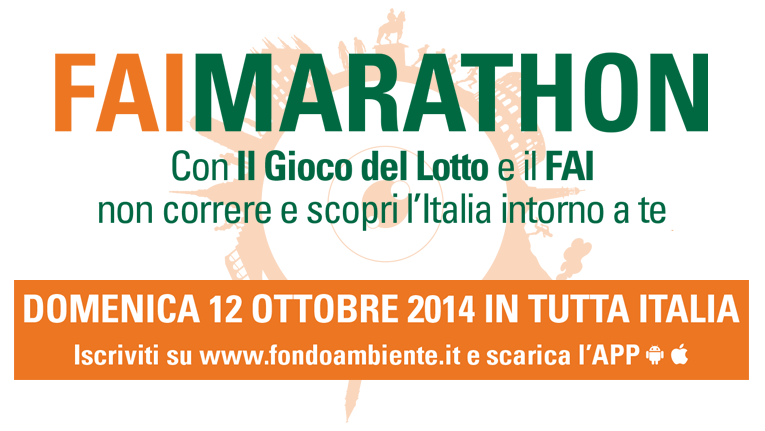 Il 12 Ottobre 2014 torna FAIMARATHON. Con il Gioco del Lotto e il FAI non correre e scopri l’Italia intorno a te, evento nazionale promosso dal FAI – Fondo Ambiente Italiano in partnership con Il Gioco del Lotto che intende coinvolgere attivamente i cittadini sensibilizzandoli sul valore del nostro patrimonio artistico, monumentale, storico e naturalistico attraverso una passeggiata culturale, non competitiva, rivolta a tutti. Nel 2013 hanno partecipato ben oltre 29.000 persone!