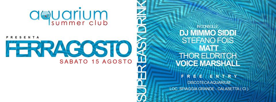 FERRAGOSTO 2015 – AQUARIUM SUMMER CLUB – CALASETTA- SABATO 15 AGOSTO 2015 Reviewed by admin on . Il ferragosto come da tradizione... Il #Ferragosto all' #aQuarium #SummerClub !! • FERRAGOSTO 2015 â–º SUPER EASY DRINK • - Dalle 24.00 in poi.... â–º Dj Mimmo Sidd Il ferragosto come da tradizione... Il #Ferragosto all' #aQuarium #SummerClub !! • FERRAGOSTO 2015 â–º SUPER EASY DRINK • - Dalle 24.00 in poi.... â–º Dj Mimmo Sidd Rating: 0