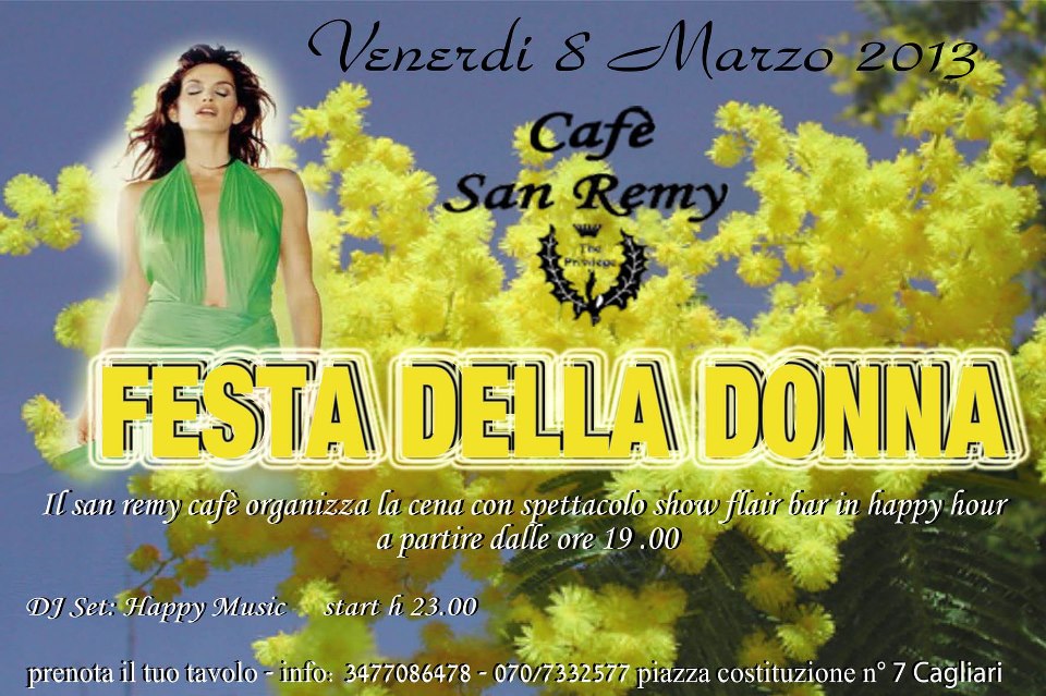 FESTA DELLA DONNA – CAFFE’ SAN REMY – CAGLIARI – VENERDI 8 MARZOWOMEN’S DAY – CAFFE’ SAN REMY – CAGLIARI – FRIDAY MARCH 8