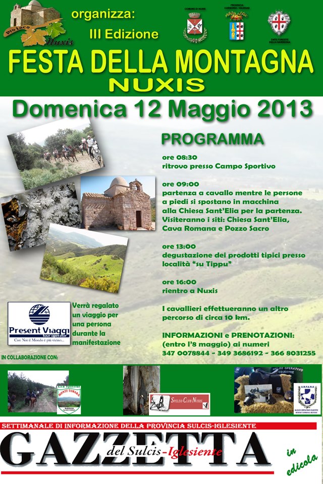 FESTA DELLA MONTAGNA – NUXIS – DOMENICA 12 MAGGIOMOUNTAIN FESTIVAL – NUXIS – SUNDAY MAY 12