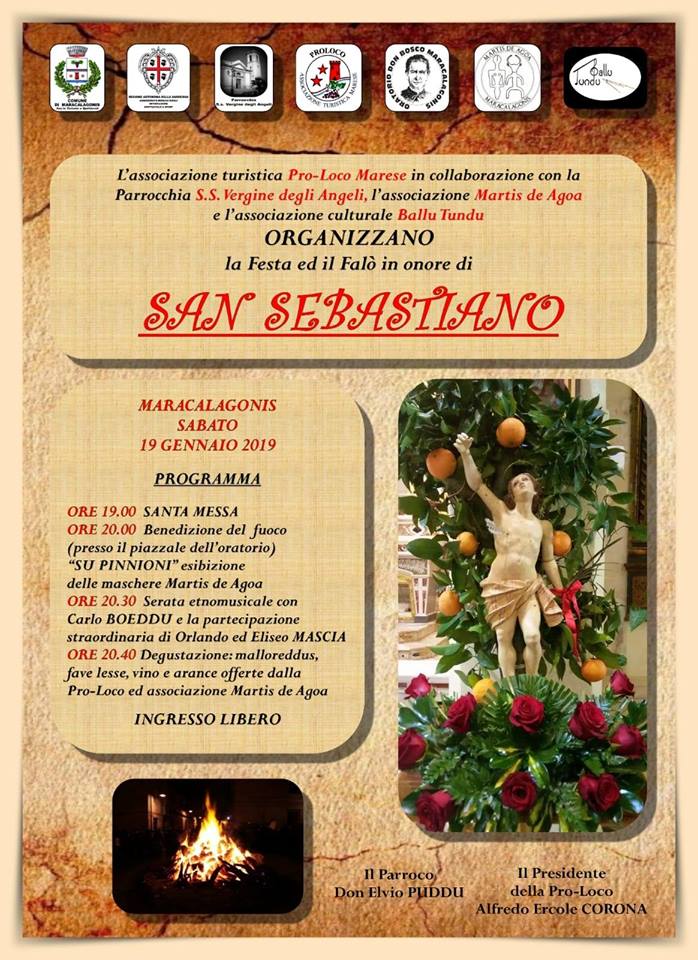 FESTA E FALO’ IN ONORE DI SAN SEBASTIANO – MARACALAGONIS – SABATO 19 GENNAIO 2019