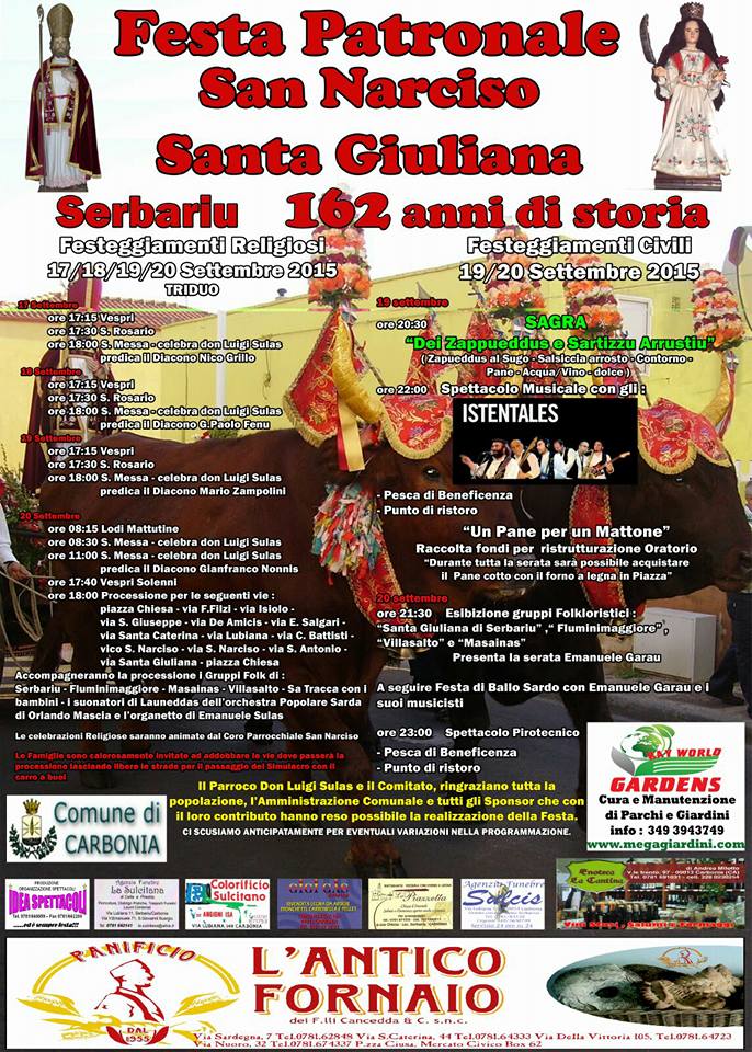 FESTA PATRONALE SAN NARCISO E SANTA GIULIANA – SERBARIU – 17-20 SETTEMBRE 2015
