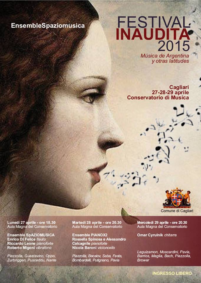 Tre serate all’insegna della “Música de Argentina y otras latitudes”: si presenta così la quinta edizione di Inaudita, il festival ideato e organizzato a Cagliari dall’Ensemble Spaziomusica. Lunedì, martedì e mercoledì (27, 28 e 29 aprile) nell’aula magna del Conservatorio “G.Pierluigi da Palestrina”, va in scena un trittico di concerti incentrati in particolare su compositori argentini del Novecento e contemporanei, non senza aperture, però, verso altre latitudini ed epoche.