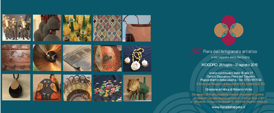 Il 24 Luglio presso il Centro Espositivo della Fiera del Tappeto di Mogoro si apriranno le porte della 54° Edizione della Fiera dell’Artigianato Artistico e del Tappeto della Sardegna. Anche quest’anno la collaborazione dei maestri artigiani con architetti e designers dà vita a una contaminazione nella quale saperi e manualità , tradizione e innovazione si fondono aprendo così nuove strade e diverse soluzioni di arredo. Sarà possibile ammirare i lavori inediti degli artigiani le cui opere interpretano liberamente il tema del “volo” inteso come metafora di vita e soprattutto di libertà . Lo spazio espositivo di oltre 2.500 mq sarà arricchito inoltre dai preziosi arazzi antichi di Mogoro, vere e proprie opere d’arte e testimonianza di una tradizione tessile sempre più presente e viva. Da oltre mezzo secolo la rassegna ha svolto un ruolo basilare nel diffondere il patrimonio dei saperi connessi alla cultura e alla tradizione artistica della Sardegna, ma allo stesso tempo promuove le importanti realtà del territorio come la Cantina Sociale “Il Nuraghe”che delizierà i palati dei visitatori con degustazioni di pregiati vini accompagnati dalla grande varietà di sapori della terra e del mare presentata da un’altra delle nostre punte di diamante della zona, l’azienda “Blue Marlin Srl”. La Fiera permette ai visitatori di scoprire e apprezzare un pezzo di Sardegna, ricco di storia, tradizione e cultura, circondato da importanti risorse naturalistiche e architettoniche che caratterizzano l’intero territorio del Parte Montis: le numerose chiese, il complesso archeologico di Cuccurada a Mogoro, il Geomuseo Monte Arci, il Museo “I cavalieri delle Colline” e la mostra “Alla Conquista del Cielo” nella vicina Masullas, il Museo Turcus e Morus a Gonnostramatza e i siti archeologici di Pompu e Siris.