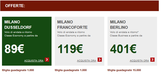 Acquista dal 1° al 15 marzo uno o più biglietti, per volare con Alitalia, airberlin e Niki da Milano a Francoforte, Berlino, Düsseldorf, Vienna, e viceversa, dall’8 marzo all’8 giugno 2016 e per ogni volo effettuato riceverai: