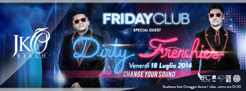 FRIDAY CLUB – SPECIAL GUEST DIRTY FRENCHIES -JKO BEACH – CAGLIARI – VENERDI 18 LUGLIO 2014FRIDAY CLUB – SPECIAL GUEST DIRTY FRENCHIES -JKO BEACH – CAGLIARI -FRIDAY JULY 18,2014