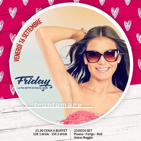 FRIDAY, LA TUA NOTTE IN RIVA AL MARE – FRONTEMARE – QUARTU SANT’ELENA – VENERDI 16 SETTEMBRE 2016