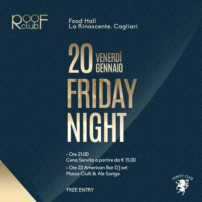 FRIDAY NIGHT – ROOF CLUB – LA RINASCENTE – CAGLIARI – VENERDI 20 GENNAIO 2017