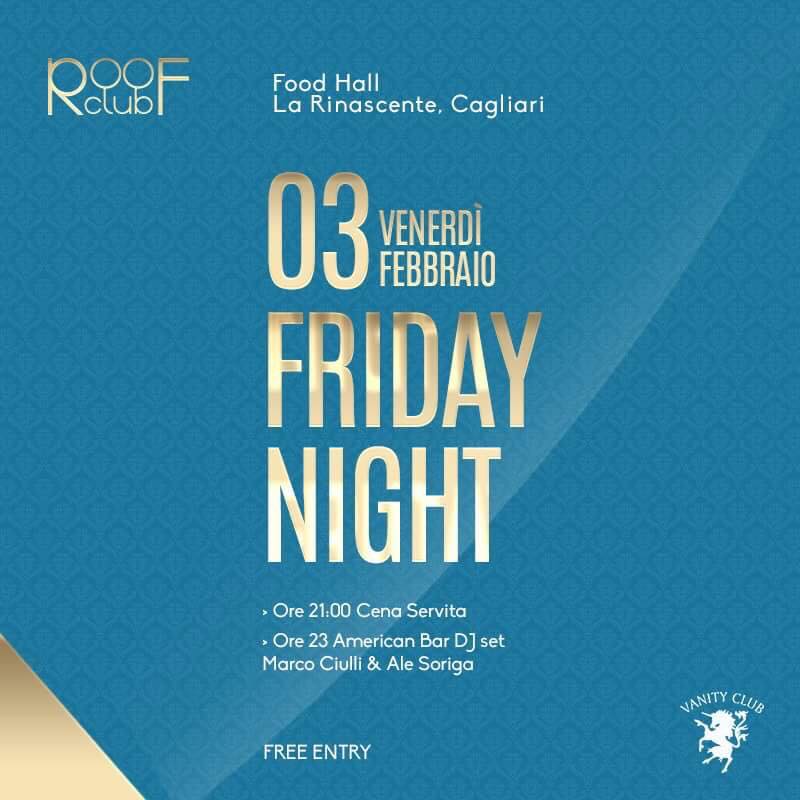 FRIDAY NIGHT -ROOF CLUB LA RINASCENTE – CAGLIARI – VENERDI 3 FEBBRAIO 2017