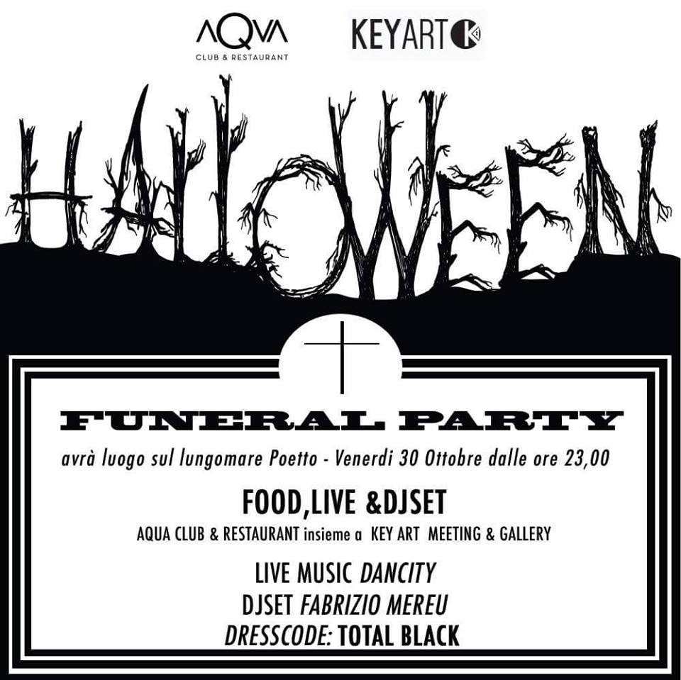 FUNERAL PARTY – AQUA RESTAURANT – QUARTU SANT’ELENA – VENERDI 30 OTTOBRE 2015 Reviewed by admin on . Venerdi 30 Ottobre...per iniziare per primi Halloween 2015 dalla cena aspettando la mezzanotte,una festa in TOTALBLACK dalla cena fino a tarda notte LIVE dei DA Venerdi 30 Ottobre...per iniziare per primi Halloween 2015 dalla cena aspettando la mezzanotte,una festa in TOTALBLACK dalla cena fino a tarda notte LIVE dei DA Rating: 0