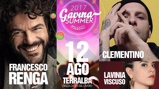 GAVINA SUMMER MUSIC 2017 – TERRALBA – SABATO 12 AGOSTO 2017 Reviewed by admin on . Anche quest'anno l'estate si accende con il Gavina Summer Music targato L'Orto di Eleonora. Sul palco due grandi star della Musica Italiana Francesco Renga e Cl Anche quest'anno l'estate si accende con il Gavina Summer Music targato L'Orto di Eleonora. Sul palco due grandi star della Musica Italiana Francesco Renga e Cl Rating: 0
