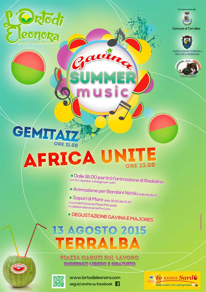 GAVINA SUMMER MUSIC – TERRALBA – GIOVEDI 13 AGOSTO 2015
