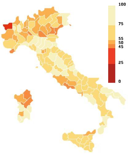 Almost all big cities do, however, record values of reduced happiness . It only saves Florence, on the 65th place with 58.2% of tweets happy. More Rome detached (54 % and 21 positions in Florence) , while in the slums of the league are Turin (91 th place ) , Milan (93 ° ) and Naples (96 °). In short, it would seem that living in the metropolis , in a period of crisis continuing , it is a good medicine for the smile , including stress (hyper) work (when there is ) , traffic, higher prices and smog. The province saddest of 2013 was, however, Aosta (44.2% ), followed by Nuoro ( 45.8 %) , which this year is confirmed in the penultimate position , and Padua ( 45.9 %). Venice too bad (48% ) and Olbia -Tempio (49.5% ), which like the nearby Nuoro was one of the areas hardest hit by the cyclone Cleopatra.