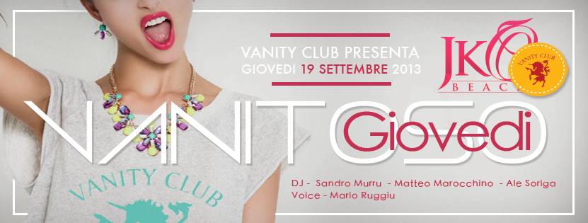 GIOVEDI VANITOSO – JKO BEACH CLUB – CAGLIARI – GIOVEDI 19 SETTEMBRE 2013VANITY THURSDAY – JKO BEACH CLUB – CAGLIARI – THURSDAY SEPTEMBER 19