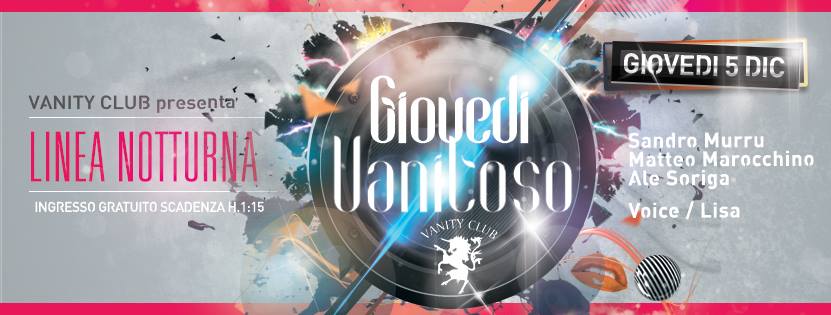 Amici e Amiche dopo il successo di Giovedi scorso Onorati di invitarvi al Giovedi Vanitoso da Linea Notturna