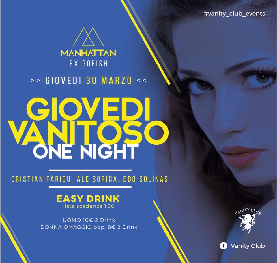 GIOVEDI VANITOSO – MANHATTAN – CAGLIARI – GIOVEDI 30 MARZO 2017