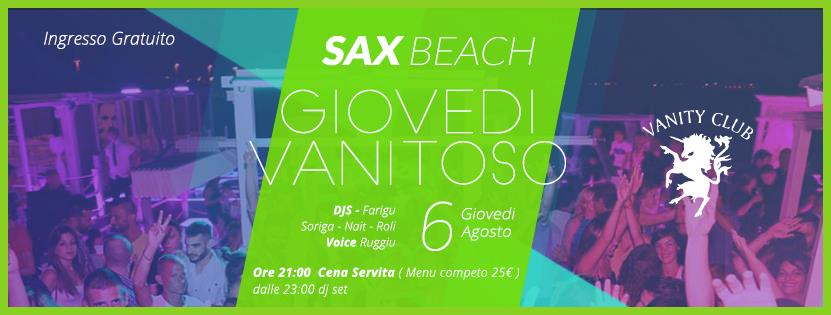 GIOVEDI VANITOSO – SAX BEACH – QUARTU SANT’ELENA – GIOVEDI 6 AGOSTO 2015